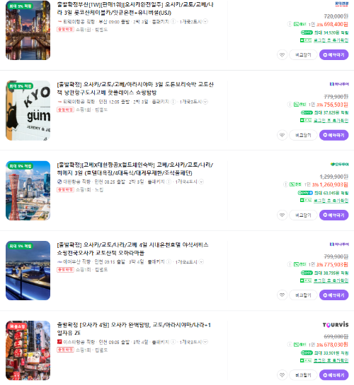 교토-나라 패키지 상품 가격 비교 사이트 & 표