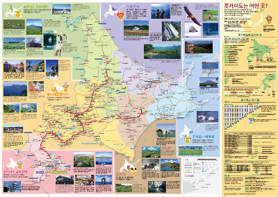 북해도의 관광 명소와 맛집등의 정보가 있는 한글 관광 지도 입니다.