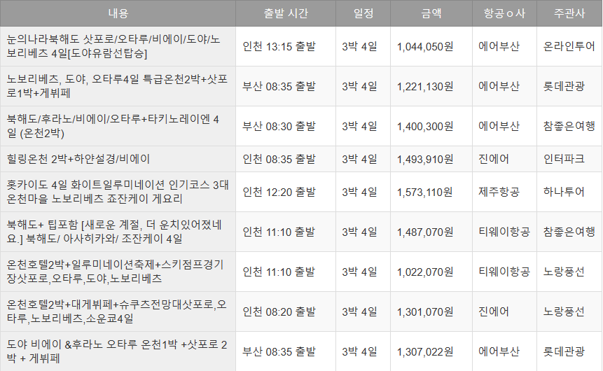 여행 준비에 도움이 될 북해도 패키지 비교 파일을 공유합니다. 링크를 통해 파일을 받아보세요.
