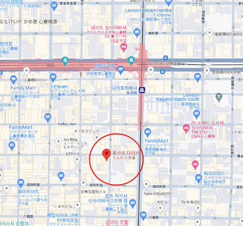 | 돈카츠 다이키 | 특선 히레카츠 정식, 카츠동 | 11:30 ~ 15:00, 17:00 ~ 21:00 (월요일 휴무) | 1 Chome-6-2 Higashishinsaibashi, Chuo Ward, Osaka, 542-0083 일본 | 나가호리바시역 |