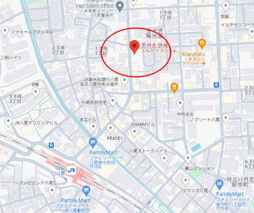 | 만제 | 특선 돈카츠 정식, 히레카츠 | 11:30 ~ 14:30, 17:00 ~ 22:00 (일요일 휴무) | 2 Chome-3-22 Yokoen, Yao, Osaka 581-0086 일본 | jr 야오역 |