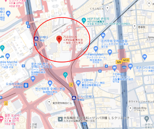| 키슈 야이치 | 오마카세 사시미 세트, 토로 스시 | 17:00 ~ 23:00 (월요일 휴무) | 일본 〒530-0017 Osaka, Kita Ward, Kakudacho, 8−7 阪急百貨店 阪急うめだ本店 12階 レストラン街『祝祭ダイニング』 | 우메다역 한큐백화점12층 |