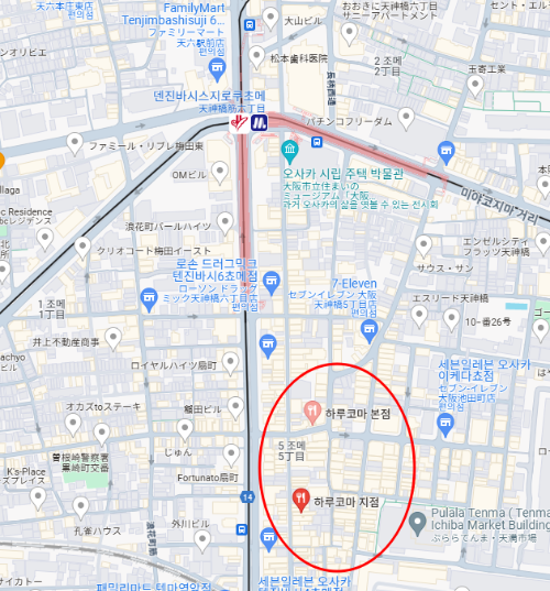 | 하루코마 | 니기리 스시 세트, 사시미 플래터 | 11:00 ~ 22:00 (화요일 휴무) | 5 Chome-5-2 Tenjinbashi, Kita Ward, Osaka, 530-0041 일본 | 타니마치선 텐진바시로쿠초메역 |