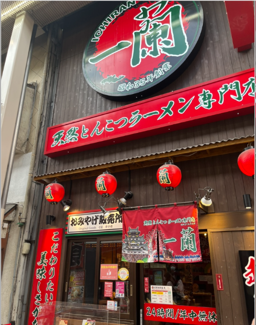 이치란 라멘은 일본을 대표하는 돈코츠 라멘 맛집으로, 도톤보리에 본점이 있습니다. 키오스크로 주문하고, 개인 공간에서 조용히 라멘을 즐길 수 있어 라멘의 맛에 집중할 수 있습니다.