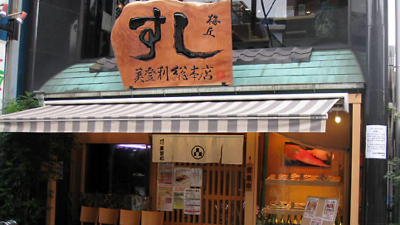 일본의 대표적인 식문화 중 하나인 서서 먹는 식당이다. 초밥집도 대부분 서서 먹는 형태로 운영되고 있다. 테이블이 없이 바 형태의 카운터에서 식사를 하며, 시부야에는 도겐자카점과 센터가이 두 곳이 있다. 서서 먹는 식당의 가장 큰 장점은 저렴한 가격이다. 비싸다는 평이 있는 초밥집 중에서는 상대적으로 저렴한 편이며, 영어 메뉴판이 있어 주문하는 데 큰 무리가 없다.