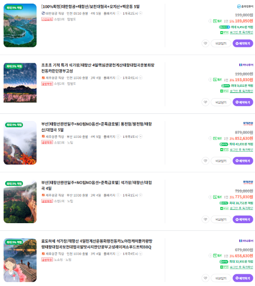 → 일부 실속형은 4곳 이상 포함됨 - 케이블카 미포함 상품 여부 확인