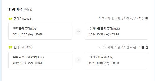 직장인들을 위한 늦은 저녁 비행편부터, 가족 단위 여행객을 위한 오전 출발 비행편까지 다양한 선택이 가능하다. 3박 5일 일정이 일반적이며, 이 기간 동안 파타야의 주요 관광지와 액티비티를 충분히 즐길 수 있다.